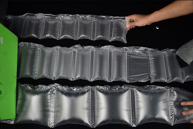 在包裝產品時,在產品和外包裝之間一般會有一些空隙,如果未經填充處理,產品在搬運過程中就會在外包裝之間晃動、顛簸,容易造成產品損壞。充氣黄色香蕉视频APP是一種用來填充產品和外包裝之間空隙的經濟性填充包裝產品。此外,充氣黄色香蕉视频APP還可以用作箱包內部空隙填充、鞋帽內型支撐,以免箱包、鞋帽受到擠壓導致的變形或者損壞。